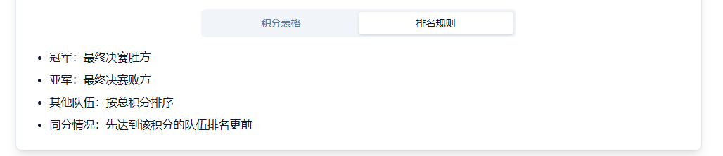 其他的队伍排名将以各自的积分为准,由高到低进行顺位排名。
