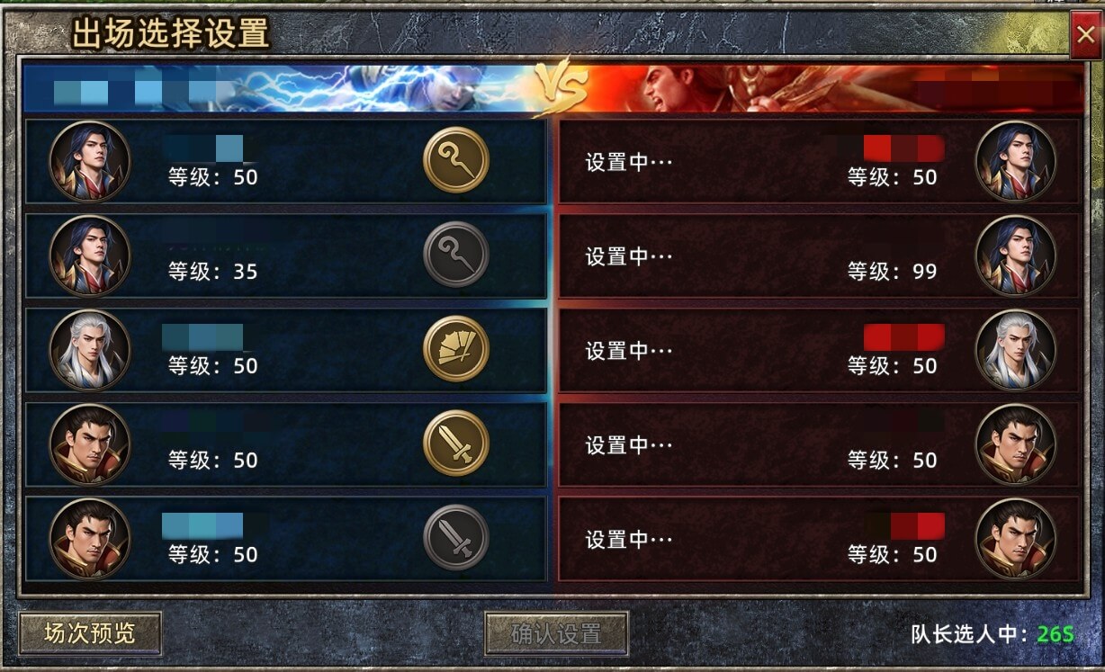 战斗两队上擂后,传送至比武场两端。5秒内无法进行操作。